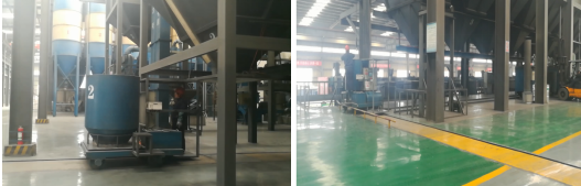 由于全自動布料機(jī)組不易拍攝,所以用該企業(yè)另一車間的布料機(jī)圖片代替。